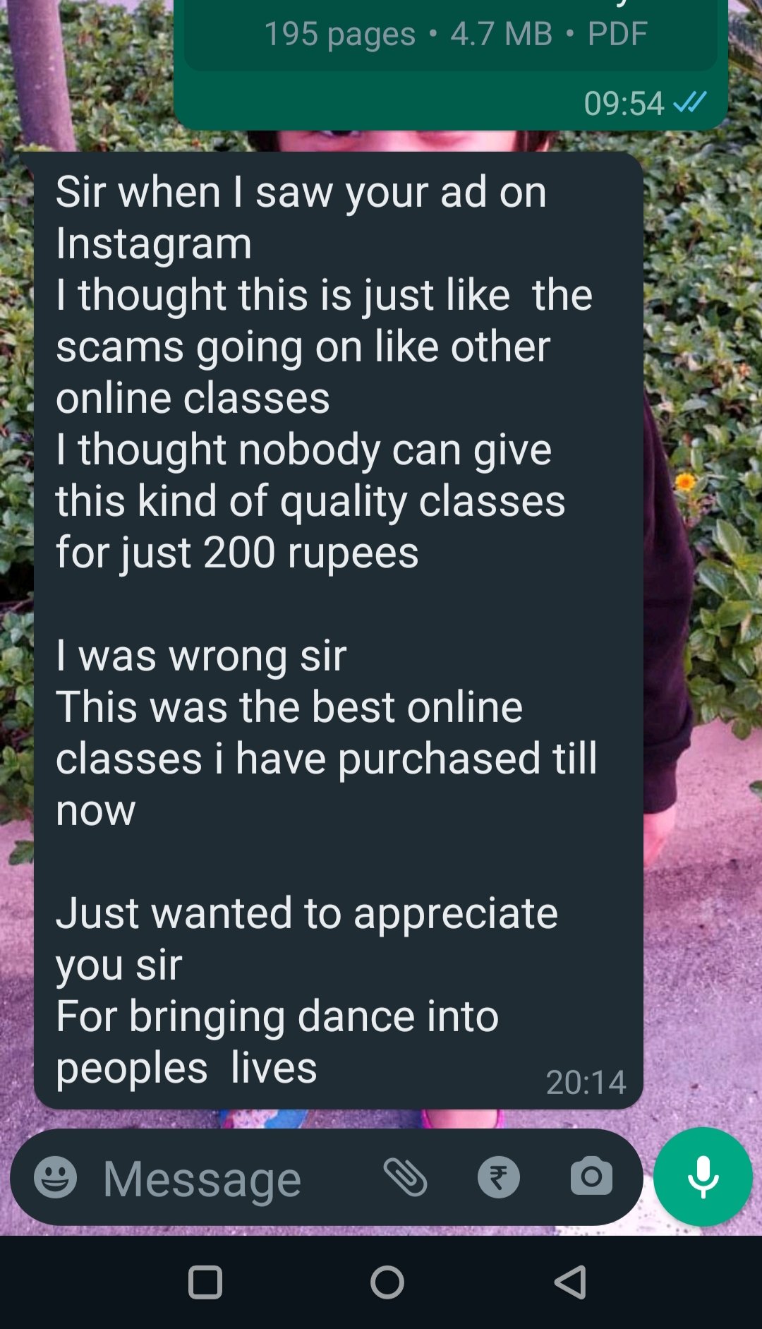When we first read this message from a student who joined our ₹200 online dance workshop, we were moved to tears: